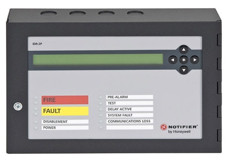 Répétiteur passif pour la duplication à distance des informations d'un système de détection d'incendie NF30/50. La communication entre le central de détection d'incendie NF30/50 et le tableau répétiteur IDR2 est une liaison RS485.